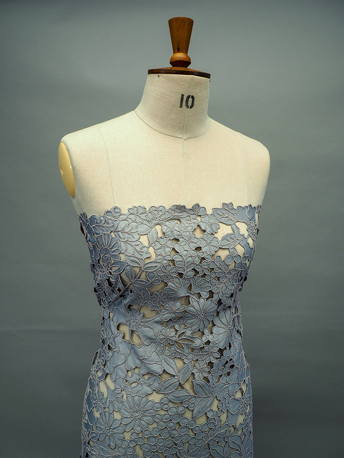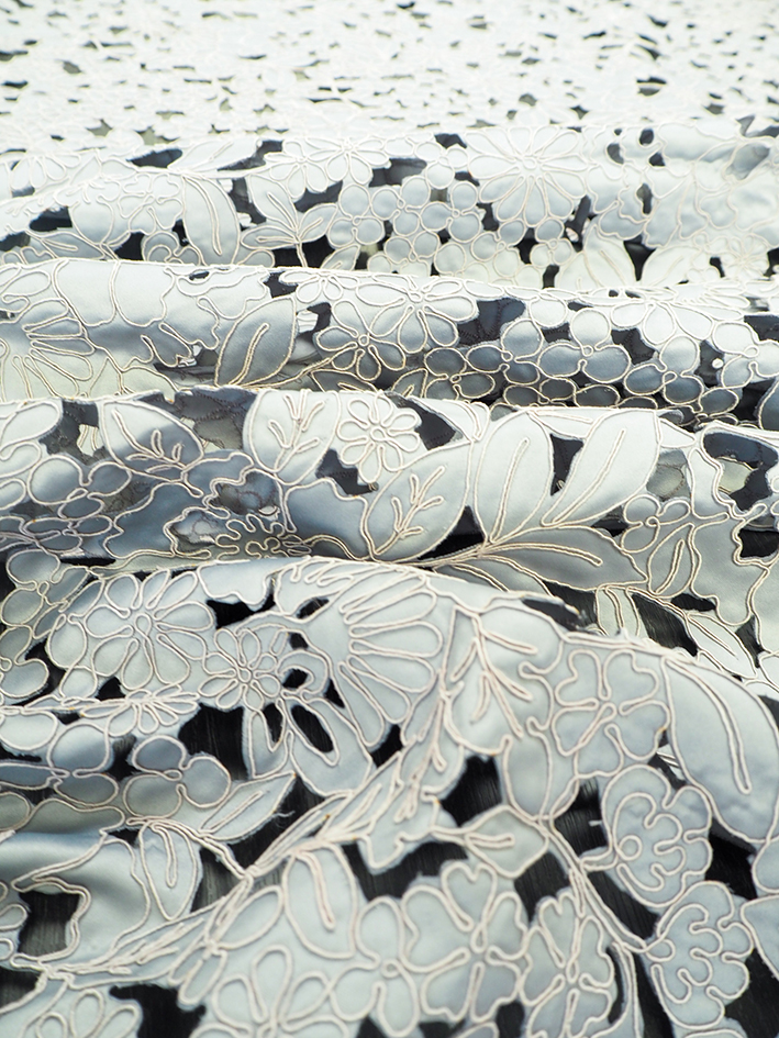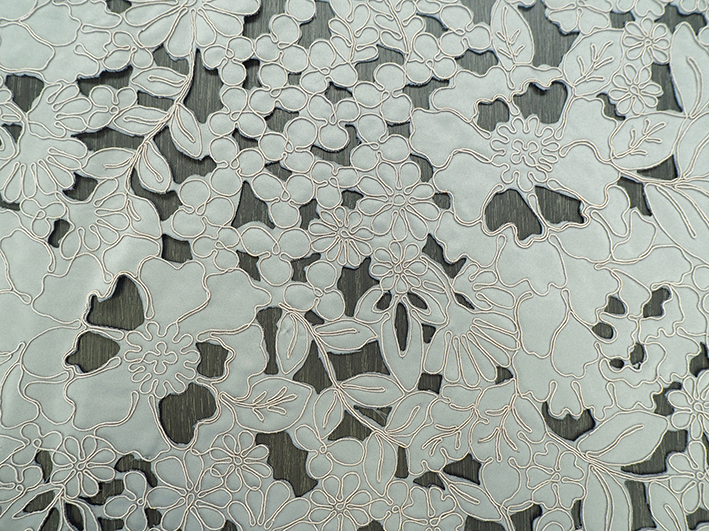 Poly satin heat cut and cording mixed floral. Allover. Width 140cm