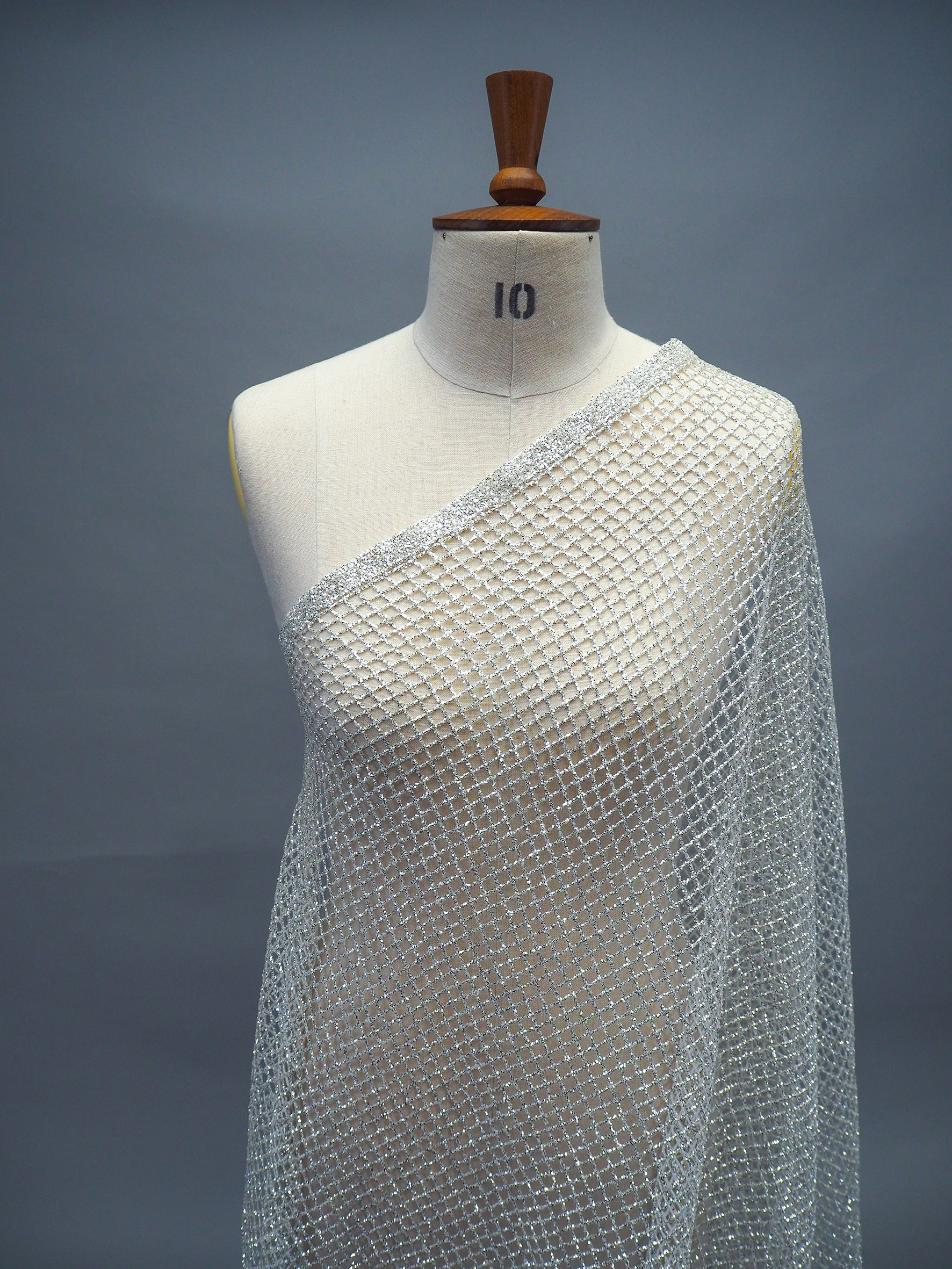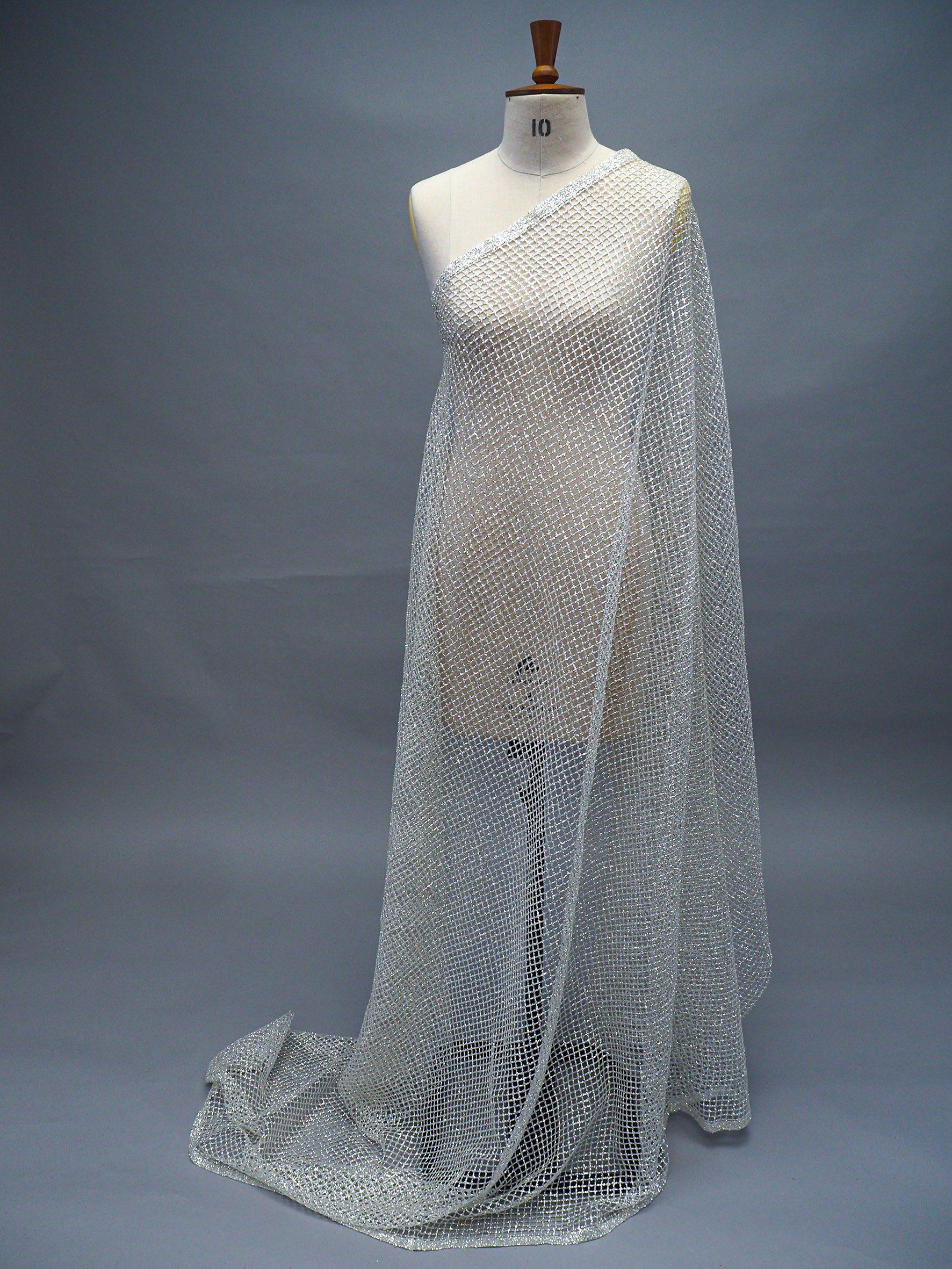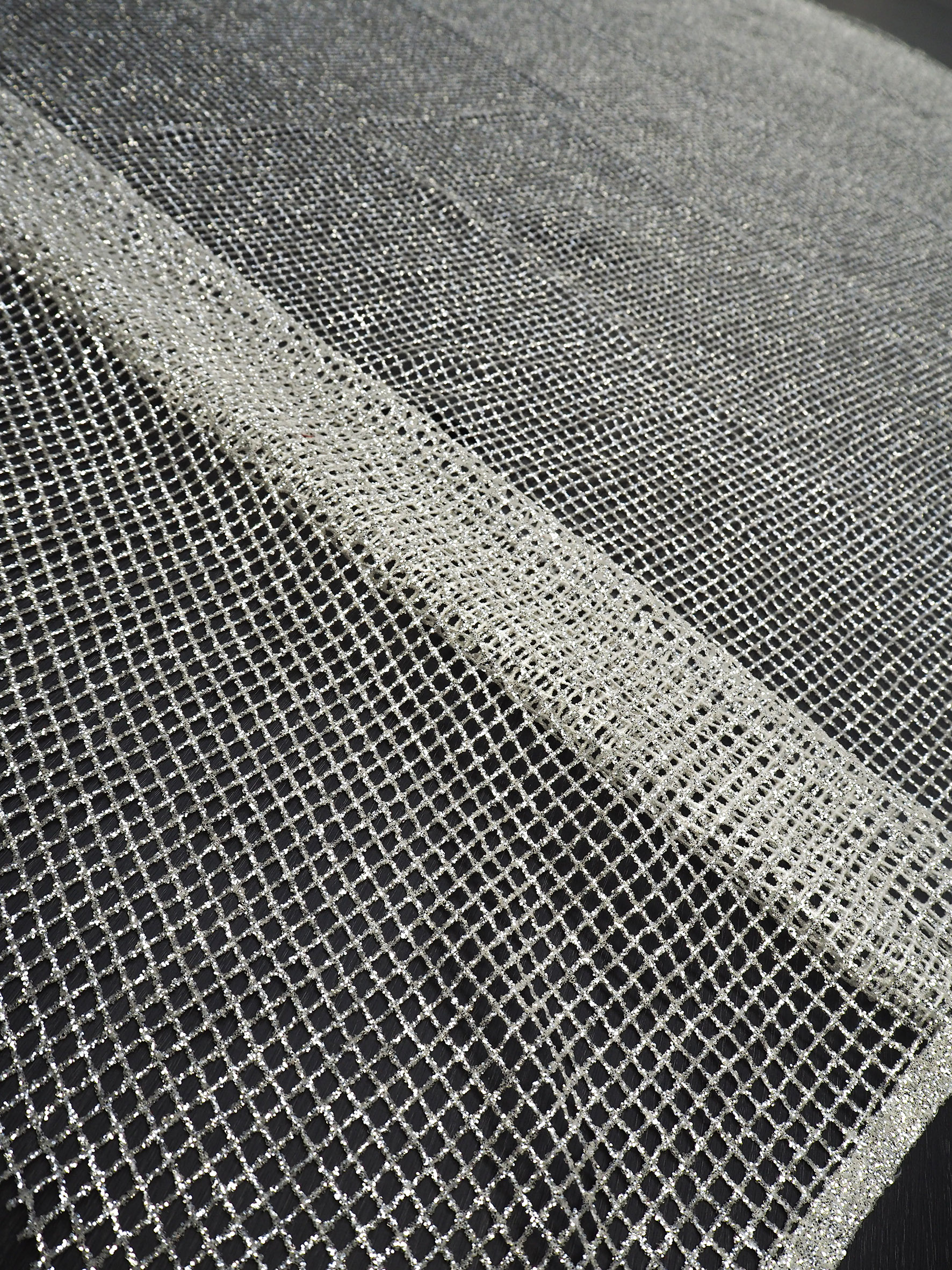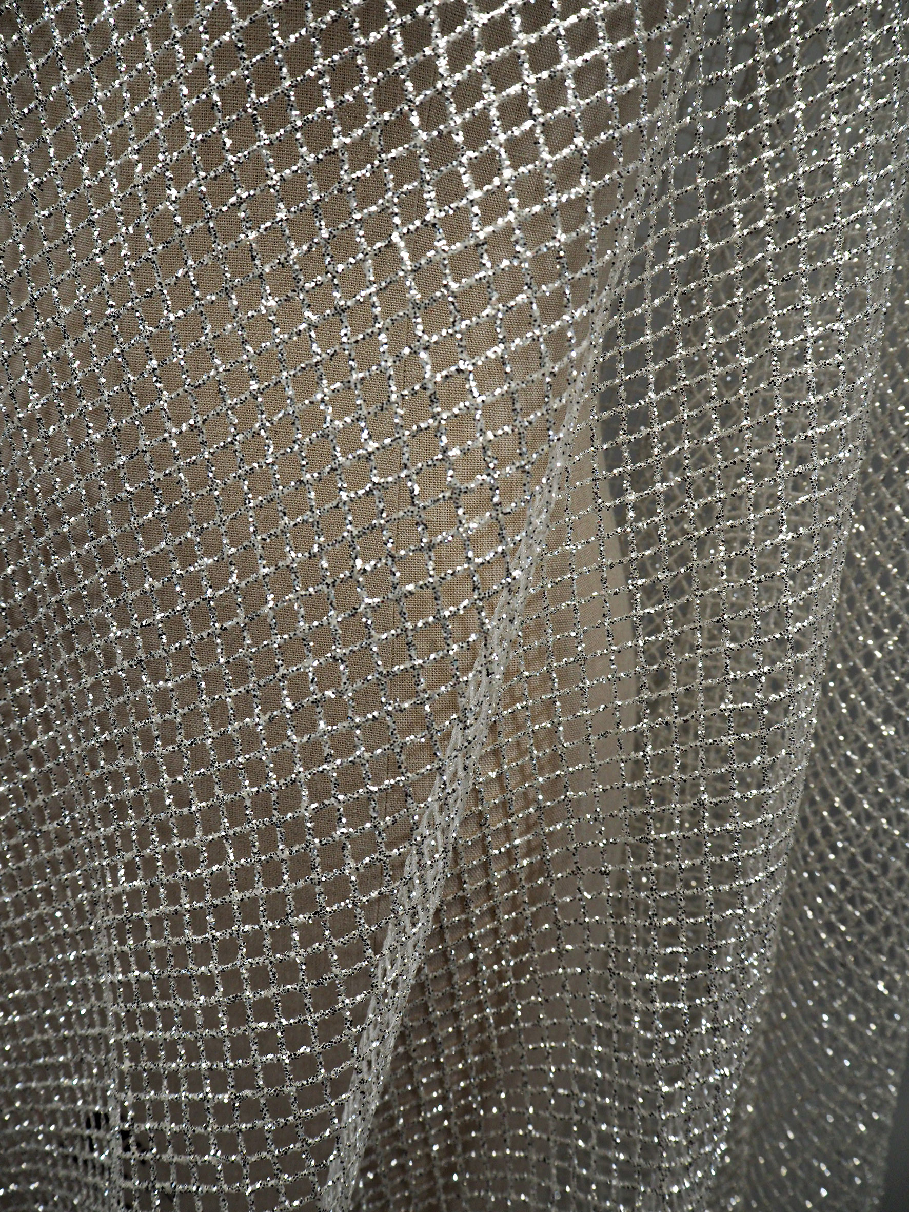 Mesh with high reflective silver glitter shine all-over. Width 140cm